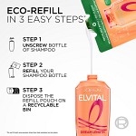Refillförpackning med 500 ml Elvital Dream Length schampo. Använd för att fylla på den flaska du redan har hemma.