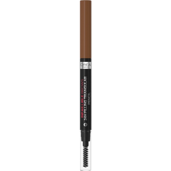 Med L'Oréal Paris Infaillible Brows 24H Filling Triangular Pencil kan du skapa definierade ögonbryn och få ett resultat som varar i upp till 24 timmar*. Formuleringen har en mjuk och krämig textur och pennan har en trekantig spets som gör det enkelt att fylla i brynen. Pennan har en borste i andra änden som du kan använda för att forma och styla.
