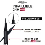 Infaillible Grip 24H Precision Felt Eyeliner från L'Oréal Paris är en eyeliner med en tunn filtspets på 0,4 mm så att du kan skapa exakta linjer. Eyelinern har en design som ger ett bra grepp för en kontrollerad och enkel applicering. Ger ett resultat som håller i upp till 24 timmar*. (*Genomsnittligt uppnått resultat vid instrumentellt test., självutvärdering, 112 personer.)