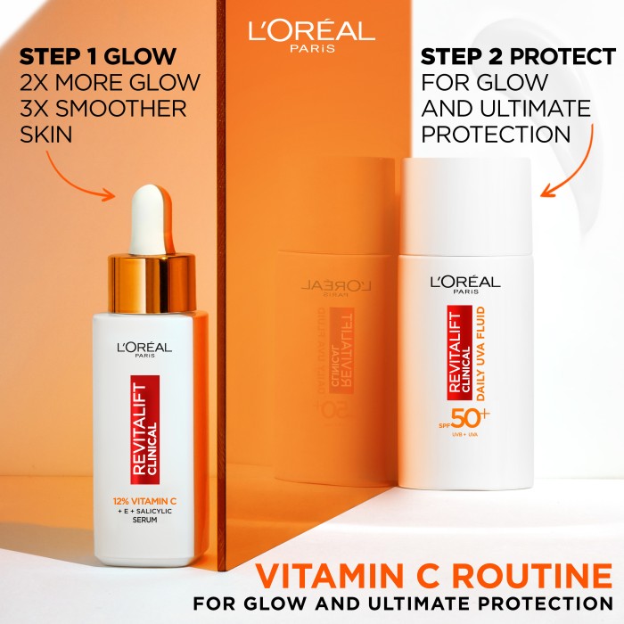 Revitalift Clinical Daily UVA Fluid SPF50 från L'Oréal Paris är en återfuktande dagkräm med UV-skydd och antioxidanten C-vitamin (vitamin Cg). Det är en lätt, icke-klibbig kräm för daglig användning.