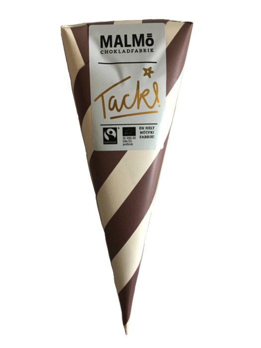Malmö Chokladfabrik Malmöstrut Tack innehåller 14 stycken lyxiga goda mjölkchokladbitar med smak av kaffe och kokos.