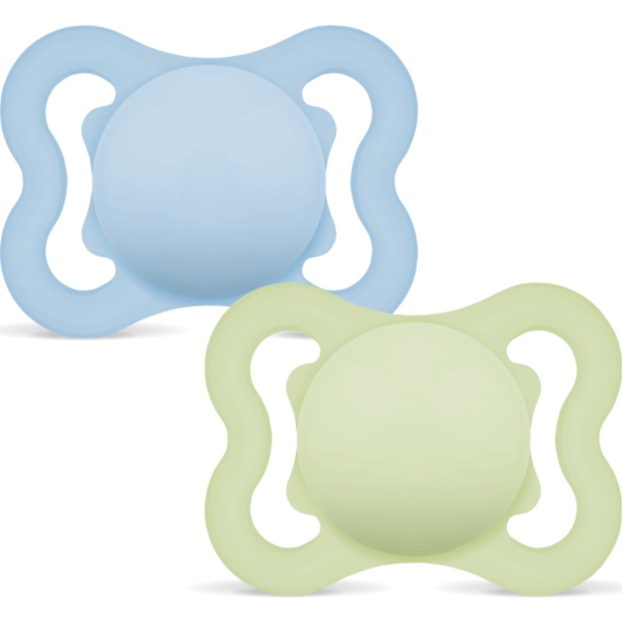 MAM Air är en napp med en platt, symmetrisk sugdel och extra stora lufthål så att bebisens hud kan andas. Den speciella designen på denna napp gör att föräldrarna kan se bebisens leende, även när nappen används. Nappen har en sugdel i silkeslen silikon (MAM SkinSoftTM silikon) som känns mjuk och välbekant för barnet, precis som mammas hud och nappen accepteras av 94% av bebisarna*. Sköld, knopp och steriliseringsbox tillverkade av bio-cirkulära material**