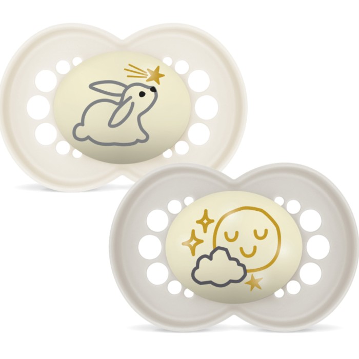 MAM Original Night är en klassisk napp som är skonsam för barnets hud tack vare stora lufthål och knottrig insida. Sugdelen är i silkeslen silikon, MAM Skin SoftTM, som känns mjuk och välbekant, precis som mammas hud och accepteras av 94% av bebisarna*. Med sin självlysande knopp är nattnappen enkel att hitta i mörker - vilket kan göra nätterna lite enklare.