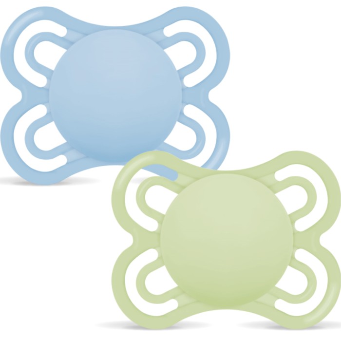 MAM Perfect är en napp med en 60% tunnare sugdel än många vanliga sugnappar, är utvecklad tillsammans med tandregleringsspecialister och barnläkare för att minska trycket på barnets käke och tänder. MAM Perfect är även fyra gånger så mjuk och flexibel som många andra sugnappar. Sugdelen är i silkeslen silikon, MAM SkinSoftTM silikon, som känns mjuk och välbekant, precis som mammas hud och accepteras av 94% av bebisarna*. Sköld, knopp och steriliseringsbox tillverkade av bio-cirkulära material.**