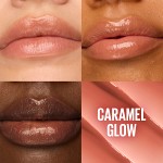 Maybelline Lifter Glaze Lip Balm är ett oljeberikat läppbalsam som återfuktar läpparna och ger dem en skir färg och en glansig finish. Maybelline Lifter Glaze läppbalm har en formulering som innehåller acerolaextrakt och hyaluronsyra. Detta läppbalsam ger fukt och en slät känsla, och känns inte klibbigt. Denna nyans heter Caramel Glow.