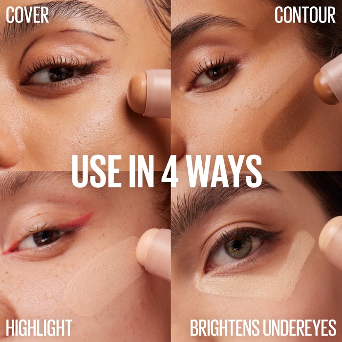 Lifter Stix Multi-Use Face Stick från Maybelline New York är ett krämigt och multifunktionellt makeupstift som du kan använda för att skapa en skulpterad look som ser naturlig ut. Svep med sticket över huden för att täcka, ljusa upp huden under ögonen, för att använda som highlighter eller för contouring. Formuleringen är berikad med tranbärsfröolja och är enkel att tona ut på huden.