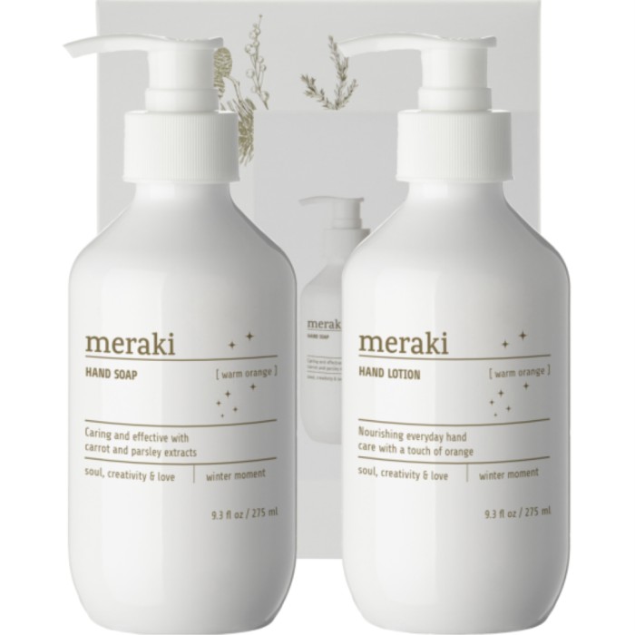 Meraki Simple Hand Care presentask innehåller en handtvål och en handlotion med doften Warm Orange. En elegant presentbox för vintersäsongen, med en design som har ett minimalistiskt uttryck för att ge en känsla av naturlig enkelhet och elegans. Stilrena flaskor med pump.