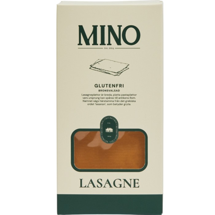 Mino Glutenfria Lasagneplattor är breda, platta bronsvalsade pastaplattor. Med Mino får du högkvalitativa plattor som håller formen, fångar smakerna och gör varje måltid till något att samlas kring.