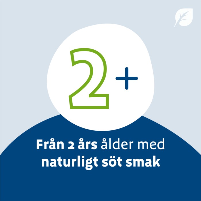 Ska ej användas vid graviditet eller amning. Får inte användas av barn under 2 år. Om symtomen kvarstår efter en vecka, konsultera läkare eller apotekspersonal.