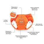 My Carry Potty Potträningsbyxa är ett 3-pack med potträningsbyxor. Denna storlek på träningsbyxor är anpassad för barn 18-24 månader och har ett sött motiv. Potträningsbyxor kan hjälpa till att ge trygghet under potträningen, då de klarar att hålla tätt för en mindre olycka när barnet glömmer att hålla sig. Till skillnad från när man använder blöjor, så känner barnet att det blir blött i byxan vilket ökar förståelsen och gör potträningen lättare.