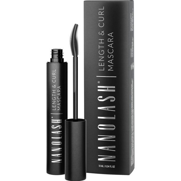 Length & Curl mascara står bra emot fukt och olika väderförhållanden, så att din sminkning ser fin ut i flera timmar. Den varken smular eller flagar på huden under ögonen. Mascaran har en ergonomisk borste med en unik form som underlättar att separera fransarna med precision och nå även de kortaste fransarna, medan den djupsvarta färgen täcker varje frans. Nanolash mascara innehåller närande ingredienser som hjälper till att hålla ögonfransar återfuktade.