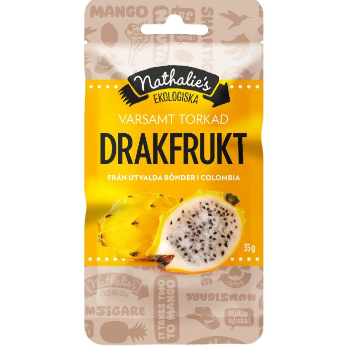 Nathalies Drakfrukt är ekologisk torkad drakfrukt (Pithaya). Du kan äta den som den är, som ett litet mellanmål, eller varför inte prova att använda den som en krispig topping på din yoghurt?