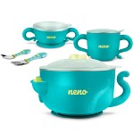 Neno Polpo är en komplett servis för din bebis. Servisen innehåller två skålar, en kopp samt en gaffel & en sked - allt ditt barn behöver för att lära sig att äta självständigt. I kitet finns även en inbyggd sugkopp som hjälper till att förhindra kladdiga små olyckor. Den innovativa värme- och kyltekniken gör det enkelt för dig att servera måltider vid rätt temperatur.