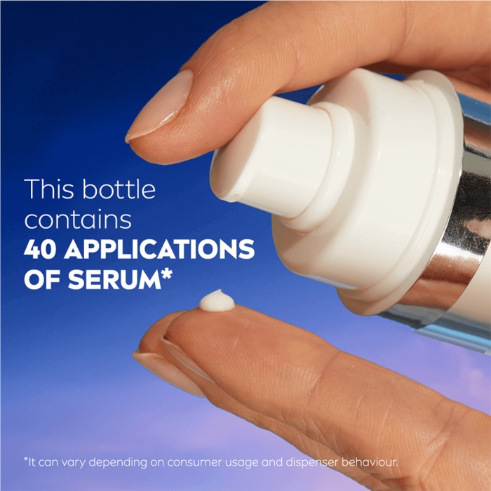 NIVEA upptäckte Epicelline®, en revolutionerande ingrediens inom epigenetisk vetenskap, som påverkar cellulär ålder genom att återaktivera hudcellernas funktioner. Serumet också innehåller tre typer av hyaluronsyra, som ger intensiv återfuktning och har en plumpande effekt. Med sin effektiva formulering motverkar serumet 10 synliga tecken på åldrande*, inklusive rynkor, förlust av elasticitet och ojämn hudton, och passar alla hudtyper, även känslig hud. (*Klinisk studie, poängförbättringar, 30-43 kvinnor, 2024)