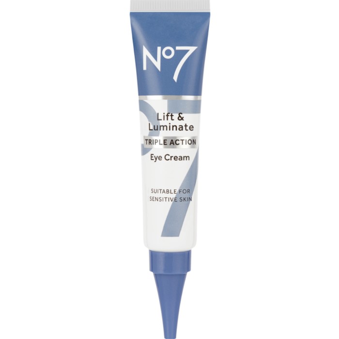 No7 Lift & Luminate Triple Action Eye Cream är en ögonkräm med utjämnande egenskaper, som kan bidra till att reducera mörka ringar, fina linjer och påsar under ögonen.