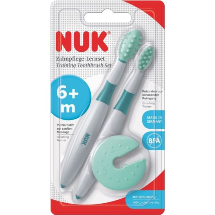 NUK Training Toothbrush Set är ett set med tandborstar för barn från 6 månader.