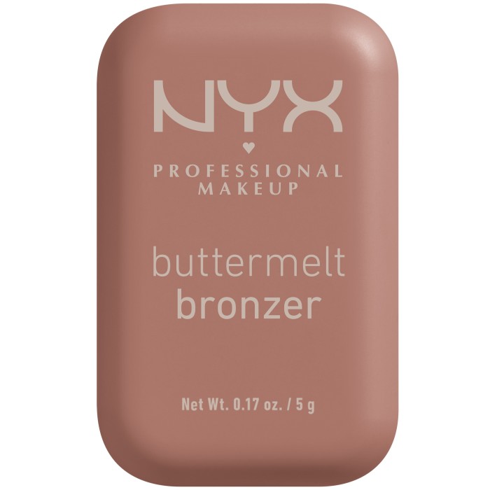 NYX Professional Makeup Buttermelt Bronzer är en bronzer som är mjuk som smör i konistensen. Bronzern ger dig en solkysst look hela dagen, smälter in i huden och ger en silkesmjuk finish med fin lyster. Innehåller bland annat mango-, shea- och mandelsmör. Trots den smöriga konsitensen känns bronzern väldigt lätt på huden och huden känns inte fet.