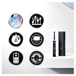 Oral-B:s CrossAction-borsthuvud har perfekt vinklade borststrån. Tandborsten har 6 borstningsfunktioner, bland annat tandköttsvård, mjuk, vitgörande och tungrengöring. Ett resefodral som kan ladda din tandborste och din telefon samtidigt medföljer.