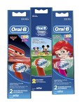 Oral-B Kids Cars/Mickey/Princess Extra Soft tandborsthuvud 3+ år 2 stOral B Kids borsthuvud är specifikt utformat för barns behov, med upphöjda mittborststrån som rengör tuggytor och interdentala toppar som kommer åt mellan tänderna. Tandborsthuvudet har extra mjuka borststrån som ger en rengöring som är lika skonsam som en mjuk, manuell borstning.