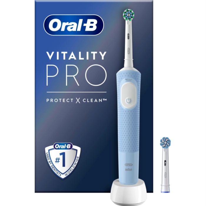 Oral-B:s uppladdningsbara eltandborste Oral-B Vitality Pro ger överlägsen rengöring jämfört med en vanlig manuell tandborste. Denna eltandborste har tre borstningsfunktioner: daglig rengöring, mjuk och sensitive plus för en skonsam borstning. Timern som är inbyggd i handtaget hjälper dig att borsta i de 2 minuter som tandläkare rekommenderar.