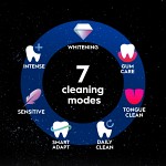 Denna tandborste ger vitare tänder genom att ta bort ytliga missfärgningar. Du kan få en personligt anpassad rengöring med iO SENSE som spårar i realtid och ger vägledning om rätt tryck. AI-positionsdetektering följer var du borstar på alla tre tandytorna. IO-trycksensorn skyddar ditt tandkött genom att visa om du borstar för hårt, för mjukt eller med lagom tryck. Tandborsten har 7 borstlägen: Smart Adapt, Daglig rengöring, Mjuk, Vitgörande, Tandköttsvård, Intensiv rengöring, Tungrengöring.