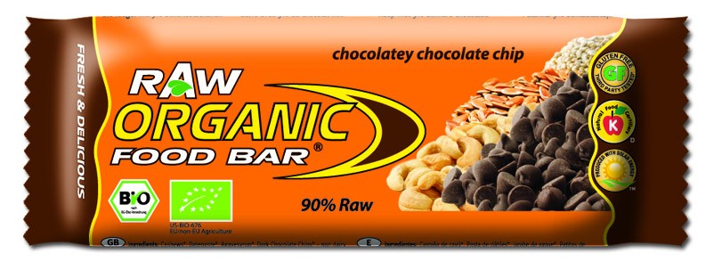 Organic Food Bar Chocolatey Chocolate Chip är en ekologisk bar med 90% raw ingredienser. Ät som mellanmål eller före eller efter träning.