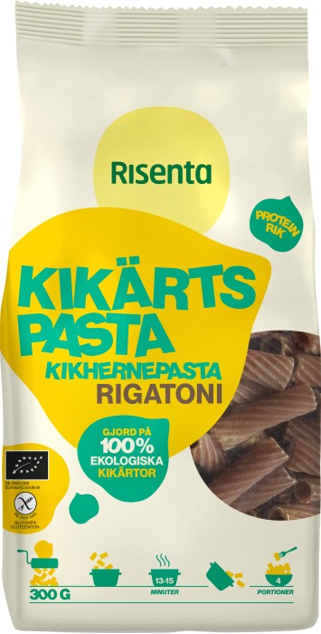 Risenta Kikärtspasta Fusilli är pasta gjord på ekologiskt kikärtsmjöl och vatten - inget annat. Pastan är naturligt fri från gluten och innehåller mer protein än vanlig pasta.
