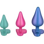 ROMP Luster är ett set med analpluggar i tre olika storlekar. Analpluggarna har smala topparna och en hjärtformad bas, och de är tillverkade av mjuk och silkeslen silikon.