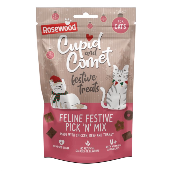 Feline Festive Pick'n Mix från Rosewood är kattgodis som innehåller bland annat kyckling, nötkött och kalkon. Kanske något för dig som vill skämma bort din katt lite extra till jul.