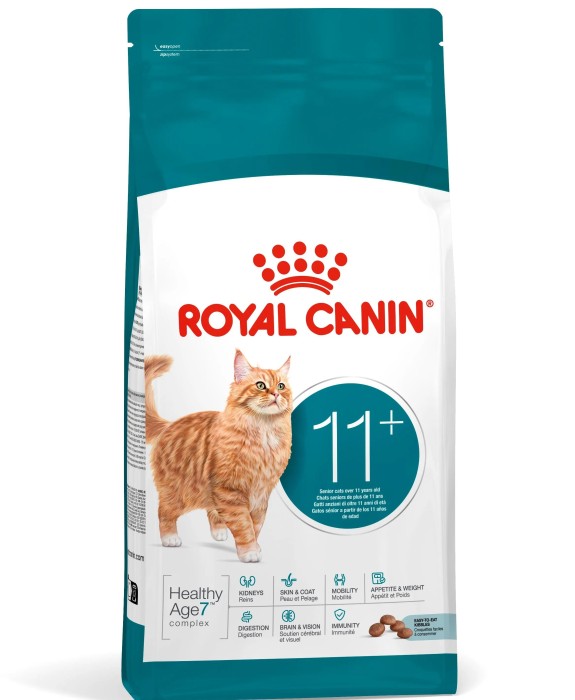 ROYAL CANIN® Ageing 11+ är ett torrfoder lämpligt för katter från 11 års ålder. ROYAL CANIN® AGEING 11+ är utformad för och testad på seniorkatter med tuggvänliga foderbitar som ger katten en njutningsfull måltidsupplevelse.