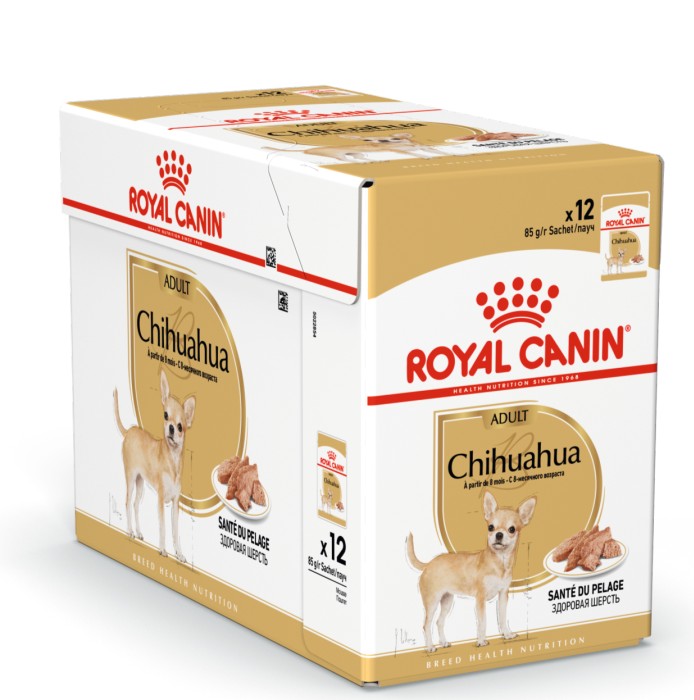 ROYAL CANIN® Chihuahua paté (loaf) är utvecklad med en speciellt anpassad konsistens för att öka smakligheten och tillfredsställa aptiten hos även de mest kräsna chihuahuas. Paténs mjuka konsistens är också idealisk för käkarna hos en mycket småvuxen ras – så som chihuahuan – för att underlätta tuggandet och stödja optimalt foderintag och matsmältning.