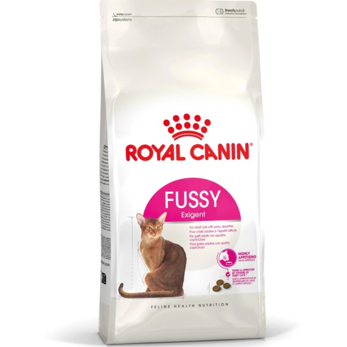 ROYAL CANIN® Fussy är omsorgsfullt utformad för att passa de unika behoven hos selektiva ätare och ger en diet som tilltalar även de mest kräsna katterna. Vänligen följ utfodringsriktlinjerna på förpackningen för att säkerställa rätt daglig foderranson.