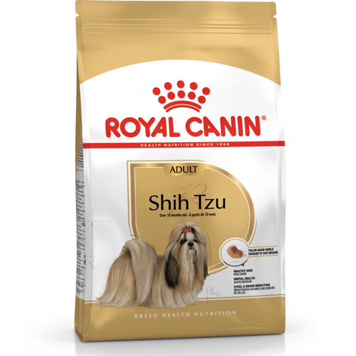 ROYAL CANIN® Shih Tzu Adult-torrfoder är ett hundfoder lämpligt för hundar som är 10 månader och äldre. Detta helfoder är speciellt utvecklat med alla din vuxna Shih tzus näringsbehov i åtanke. Det innehåller en exklusiv kombination av näringsämnen som bidrar till att bibehålla din hunds hud hälsosam – vilket har en positiv effekt på pälshälsan. Sammansättningen inkluderar omega-3-fettsyrorna EPA och DHA, och är berikat med boragoolja; dessa fettsyror är viktiga för att ge näring till din hunds hud och päls. Fodret innehåller också kalciumkelatorer som bidrar till att bibehålla din hunds tandhälsa.