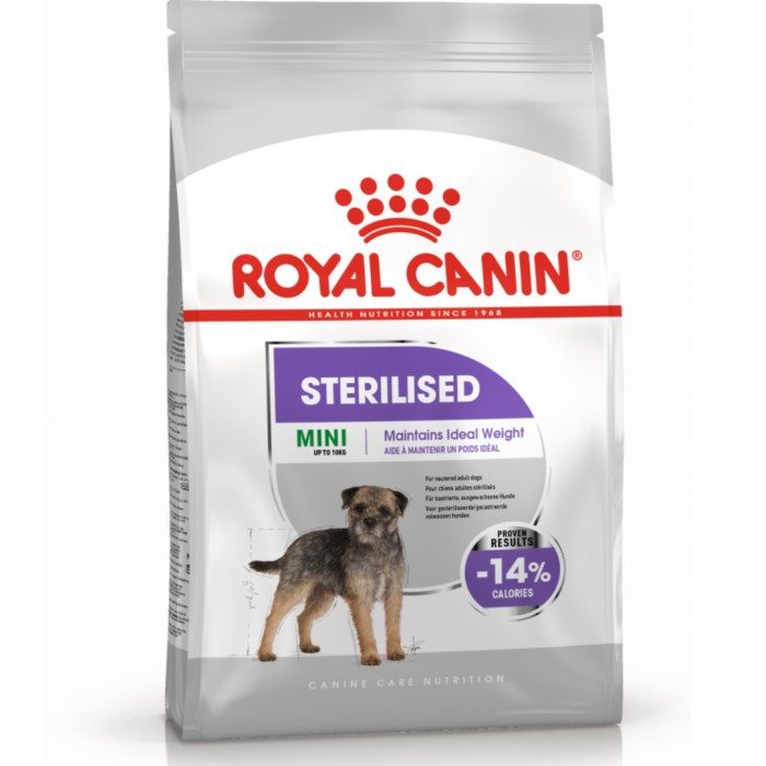 Royal Canin Sterilised Mini Adult torrfoder är ett helfoder för kastrerade vuxna hundar av småvuxna raser (från 1 till 10kg) som är över 10 månader gamla - hundar med tendens till att öka i vikt.