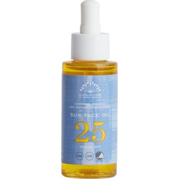 Rudolph Care Sun Face Oil SPF 25 är en återfuktande och vårdande ansiktsolja som skyddar huden i ansiktet mot solens strålar med SPF25.