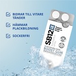 SB12 Boost Eucalyptus White är ett sockerfritt tuggummi med smak av eucalyptus som stärker dina tänder och ger en fräschare andedräkt. Boost Eucalyptus White innehåller natriumvätekarbonat och kalciumkarbonat som bidrar till vitare tänder, och xylitol som hämmar plackbildning. Tuggimmina innehåller även zink som reducerar flyktiga svavelgaser (VSC), det som orsakar dålig andedräkt. Innehåller sötningsmedel. Kan användas från 12 år.
