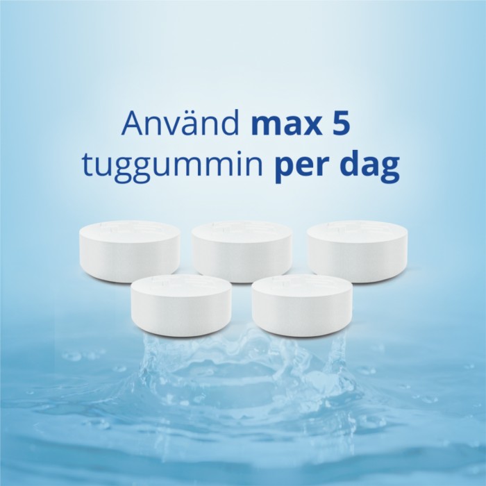 Rekommenderad dos: 5 st tuggummin per dag. Rekommenderad dagsdos bör ej överskridas. Överdriven konsumtion kan ha en laxerande effekt.
