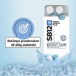 SB12 Boost Strong Mint är ett sockerfritt tuggummi med en frisk smak av mint som stärker dina tänder och ger en fräschare andedräkt. Innehåller zink som reducerar och förhindrar uppkomsten av de ämnen (flyktiga svavelgaser) som orsakar dålig andedräkt. Innehåller även xylitol som motverkar plackbildning. Innehåller sötningsmedel. Kan användas från 12 år.