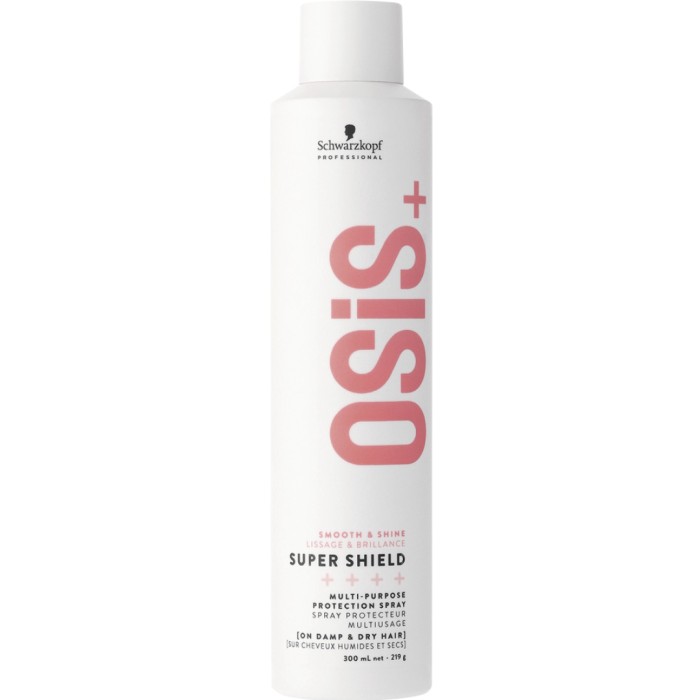 OSiS+ Super Shield är en mångsidig, skyddande hårspray som är specifikt framtagen för att skydda håret mot föroreningar, fukt och värme upp till 230°C. Sprayen kontrollerar frissighet, är utredande och ger glans åt matt hår.