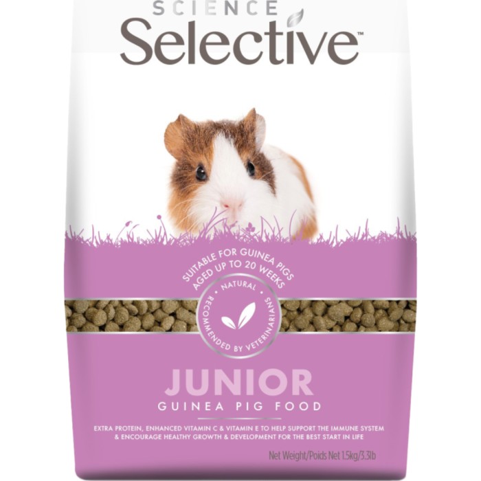 Selective Junior Guinea Pig Food för marsvin rekommenderas av veterinärer och ger en välsmakande balanserad kost för marsvin upp till 20 veckors ålder. Detta smådjursfoder är fullt av naturliga ingredienser som är goda för djuret, inklusive maskros och fänkål. Innehåller extra protein som stödjer tillväxten och tillsatt C-vitamin för att bidra till unga marsvins hälsa. Innehåller även linfrö, en källa till omega-3, för att främja en frisk hud och päls.