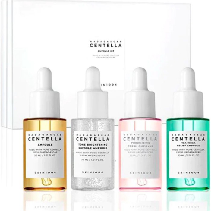 SKIN1004 Madagascar Centella Ampoule Kit är ett set som innehåller fyra hudvårdsprodukter berikade med Centella: