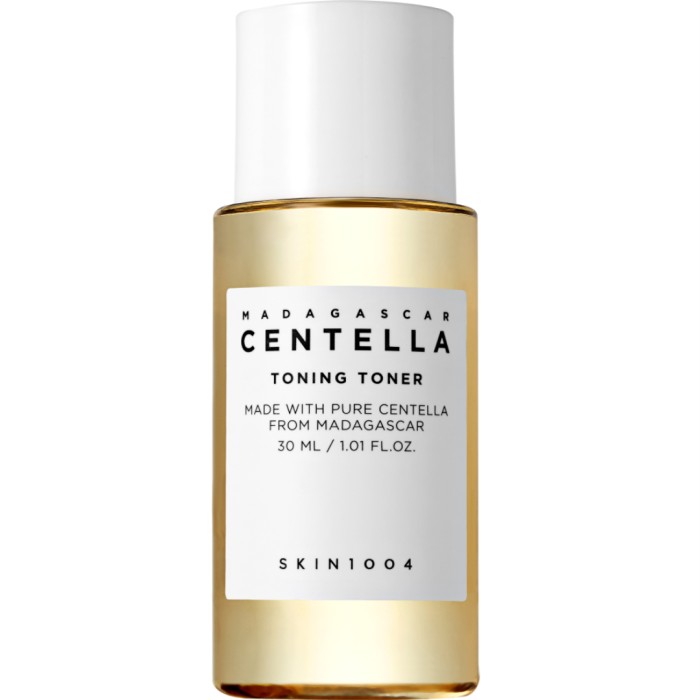 Centella Toning Toner 30 ml: Centella Asiatica Extract(84%), Water, Dipropylene Glycol, 1,2-Hexanediol, Niacinamide, Gluconolactone, Tromethamine, Carbomer, Sodium Citrate, Adenosine, Disodium EDTA, Dipotassium Glycyrrhizate, Betaine, Hyaluronic Acid, Ethylhexylglycerin