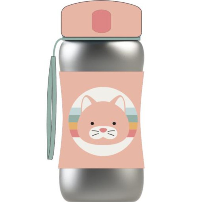 Skip Hop sportflaska i Zoo-serien är en söt flaska i rostfritt stål. Flaskan för barn är tillverkad av tåligt rostfritt stål och har ett greppvänligt silikonskydd för att inte kännas för kall för barnets händer. Drickflaskan har ett inbyggt sugrör, en praktisk rem att hålla i och ett pop-up-lock för hygienisk användning.