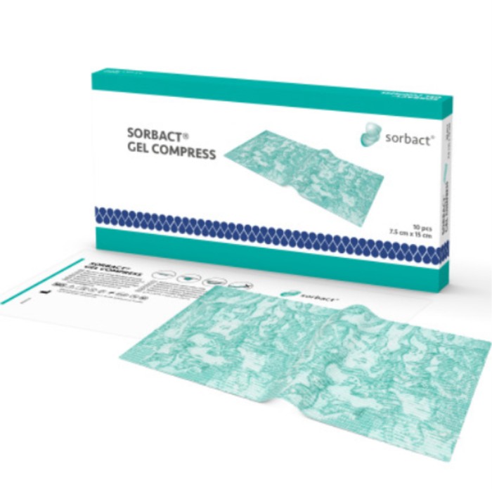 Sorbact gelkompress består av en kompress med Sorbact® bakteriebindande sårkontaktlager tillsammans med en vattenbaserad gel som avger fukt till såret och därigenom skapar en optimal miljö för sårläkning. Förpackningen innehåller 10 st kompresser.