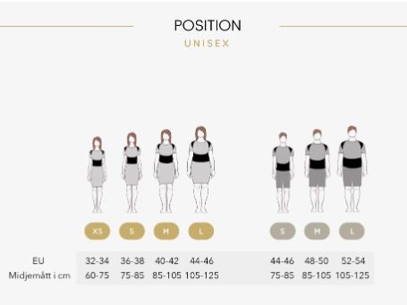 Position Hållningsväst från Swedish Posture är en hållningsväst för en bättre hållning i rygg och mindre spänningar. Storlek S motsvarar storlek 36-38 (kvinna) 44-46 (man), och passar midjemått 75-85 cm.