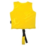 Varje ficka i västen innehåller tre lager skumskivor. Flytkraften i simvästen kan justeras för att passa barnets vikt, genom att plocka ur en eller två av dessa skivor. Simvästen tas enkelt på och stängs med blixtlås och kardborreband. Grenremmen är justerbar och anpassas efter barnets längd. Den har en utformning som ger barnet rörelsefrihet och komfort med sömmar som inte skaver. 100% neopren med ett yttre lager av polyester och fickor i 85% och 15% elastan. Fyllning (skumskivor) i skumplast av expanderbar polyeten.
