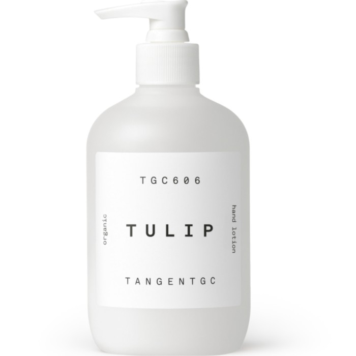 Tulip Hand Lotion från Tangent GC är en handkräm med doft av tulpan. Krämen har en långtidsverkande formulering som verkar både på ytan och djupet. Formuleringen bygger på NMF (Natural Moisturizing Factors), som är ämnen som finns naturligt i huden har bevisad effekt. Handlotionen innehåller AHA, glycerin och E-vitamin. Lotionen återfuktar huden och gör händerna mjuka.