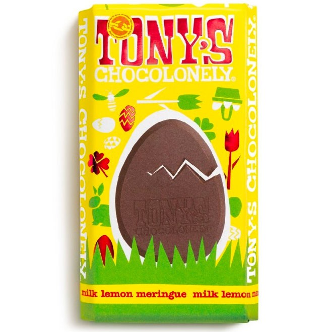 Tony's Chocolonely Milk Lemon Meringue är en mjölkchoklad med citron och maräng. Denna påsk-chokladkaka från Tony kanske passar dig som inte nöjer dig med några påskägg, utan vill ha en riktig chokladkaka.