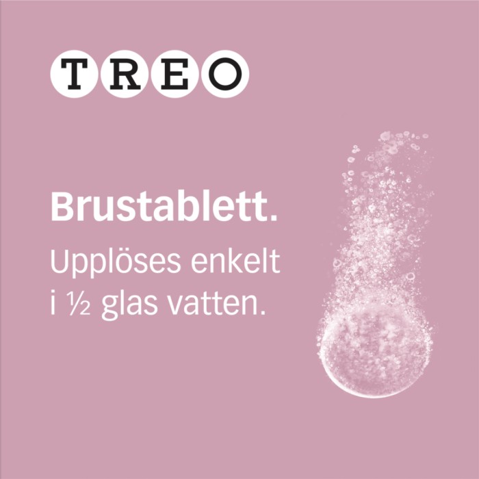 Treo är ett receptfritt läkemedel mot migrän, huvudvärk, tillfällig smärta och feber. Treo brustablett innehåller 500 mg acetylsalicylsyra och 50 mg koffein – en kombination som ger snabb smärtlindring inom 30 minuter. Treo är smärtstillande, febernedsättande och inflammationshämmande och lindrar vid huvudvärk, migrän, mensvärk, tandvärk, muskelvärk, ledvärk och feber.