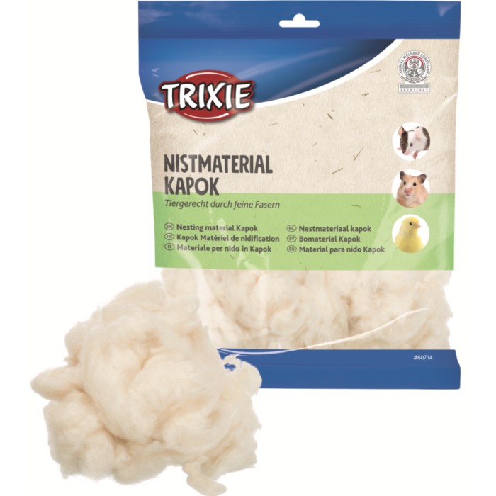 Bomaterial kapok för smådjur. Kapok är ett bomaterial med fina, lätt separerbara fibrer som gör det extra mjukt och värmande för smådjur.